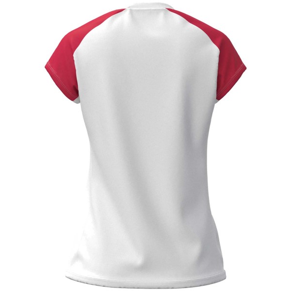 Maillot spécialement taillé pour les féminines. Il présente un design bicolore unique en sublimation sur la face avant et des manches courtes raglan qui assurent autant l'esthétisme que le confort lors des mouvements de bras.